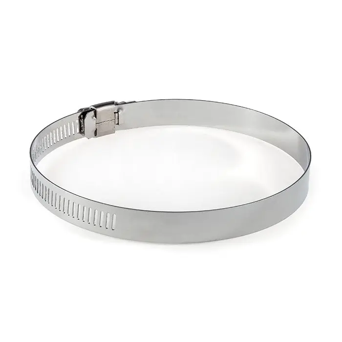 Перфорация обеспечивает стойкую фиксацию между червяком и лентой, а болт затягивает хомут до нужного уровня.