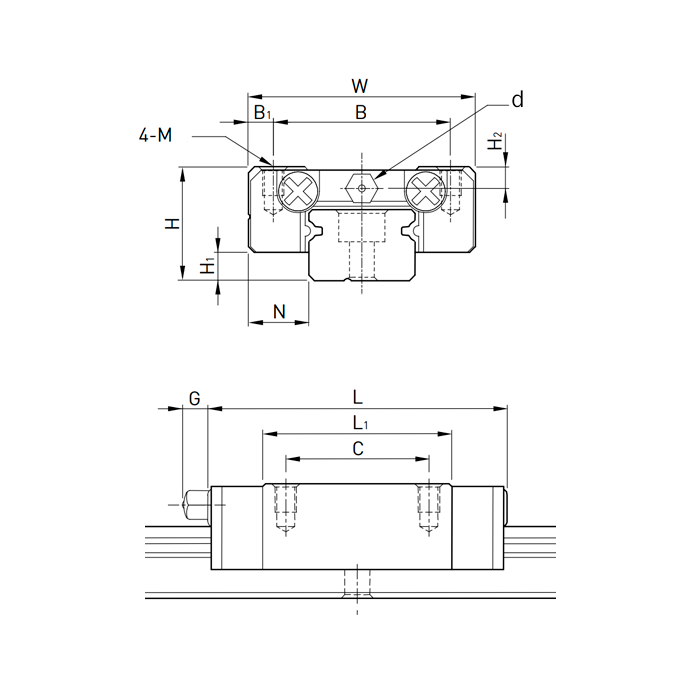 Ширина каретки равна 32 мм, длина — 58,8 мм, высота — 16 мм. Для крепления иcпользуются винты M3x4. Выдерживает динамическую нагрузку 6,5 кН и статическую нагрузку 9,3 кН. Вес равен 0,092 кг