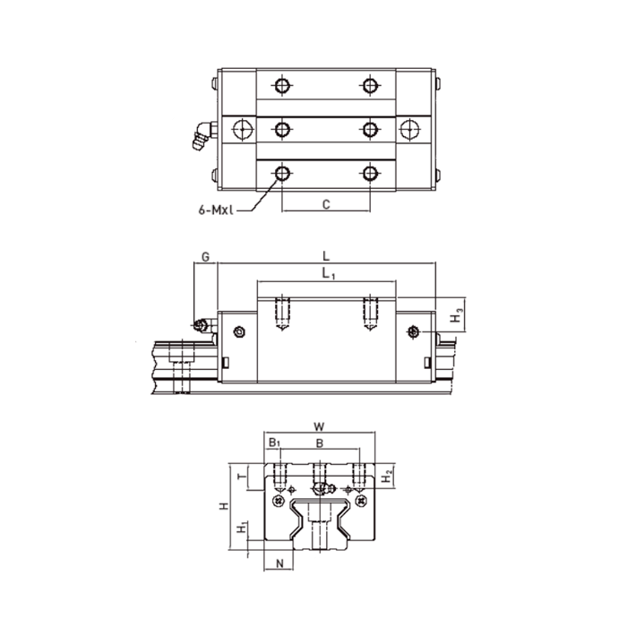 Ширина каретки равна 70 мм, длина — 151,5 мм, высота — 55 мм. Для крепления иcпользуются винты M8. Выдерживает динамическую нагрузку 73,1 кН и статическую нагрузку 142 кН. Вес равен 1,86 кг
