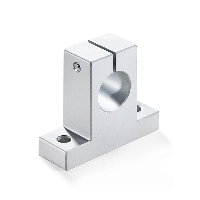 Опора SK30 ISKRA — элемент системы линейного перемещения, который используется для фиксации вала параллельно опорной плоскости. Обеспечивает высокую точность и скорость работы узла. Опора изготовлена из дюралюминия, благодаря чему имеет высокую прочность и небольшой вес. Деталь крепится к монтажной поверхности с помощью двух винтов. Диаметр отверстия под вал составляет 30 мм. Ширина основания опоры — 84 мм, длина — 28 мм, толщина — 12 мм. Высота опоры составляет 70 мм. Вес элемента равен 0,18 кг.
