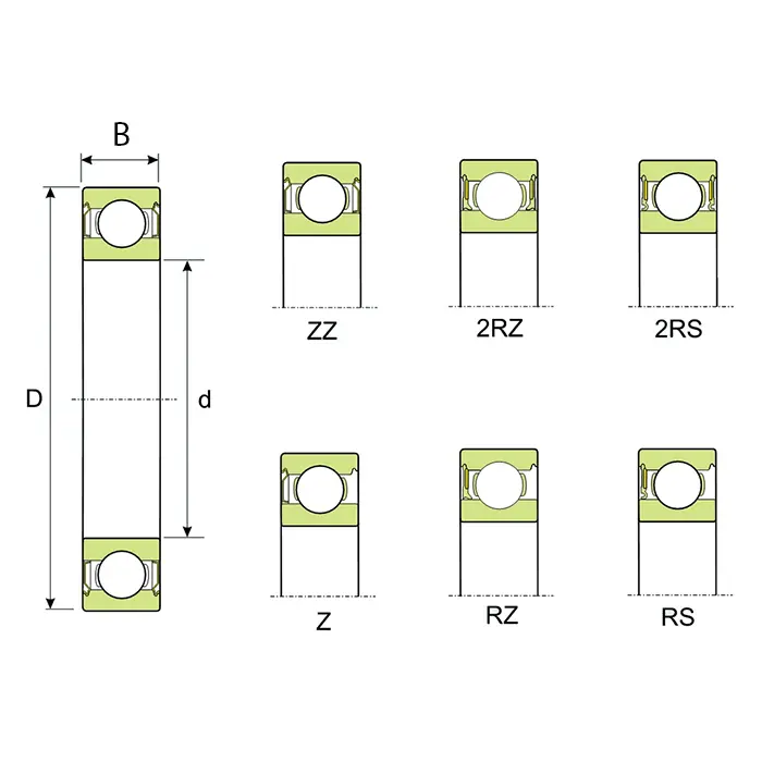 - Уплотнение ZZ (двусторонняя защитная металлическая шайба)