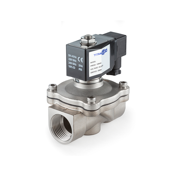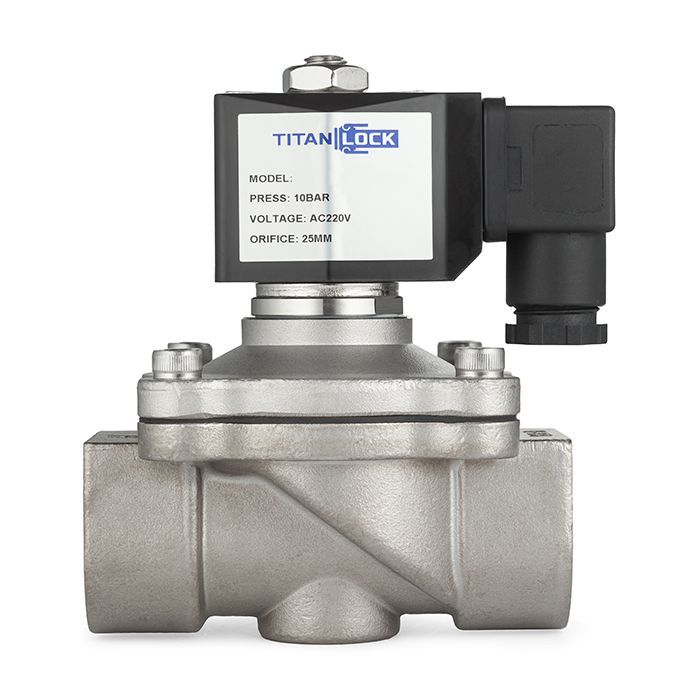 Соленоидный клапан нормально-открытый, прямого действия, 220В, PN10, Нерж.304/FKM, DN40, TLSO40/10FK1S-J TITAN LOCK — это соленоидный (электромагнитный) клапан прямого действия, выполненный из нержавеющей стали 304.