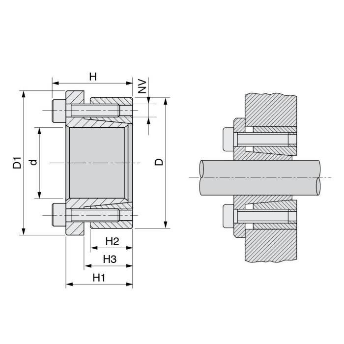 Зажимные втулки применяются для быстрой установки на вал и демонтажа различных элементов трансмиссии, таких как кулачковые муфты, звездочки, клиновые и зубчатые шкивы.