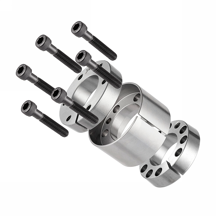 Зажимные втулки применяются для быстрой установки на вал и демонтажа различных элементов трансмиссии, таких как кулачковые муфты, звездочки, клиновые и зубчатые шкивы.