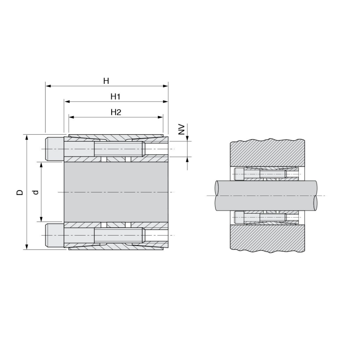 Наружный диаметр втулки равен 80 мм, внутренний — 48 мм. Оборудована 4 винтами для слабых нагрукок и 8 винтами для сильных нагрузок. Тип винтов — M8x55. Вес втулки составляет 1,4 кг.