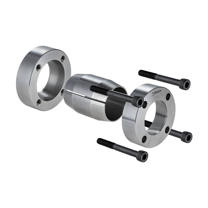 Зажимные втулки применяются для быстрой установки на вал и демонтажа различных элементов трансмиссии, таких как кулачковые муфты, звездочки, клиновые и зубчатые шкивы.