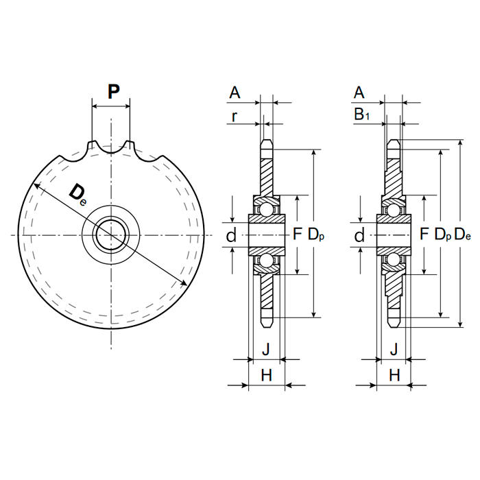 Звездочка натяжная на шариковых подшипниках для цепи 10B, Z=16, 5/8"x3/8" PC10016 ISKRA